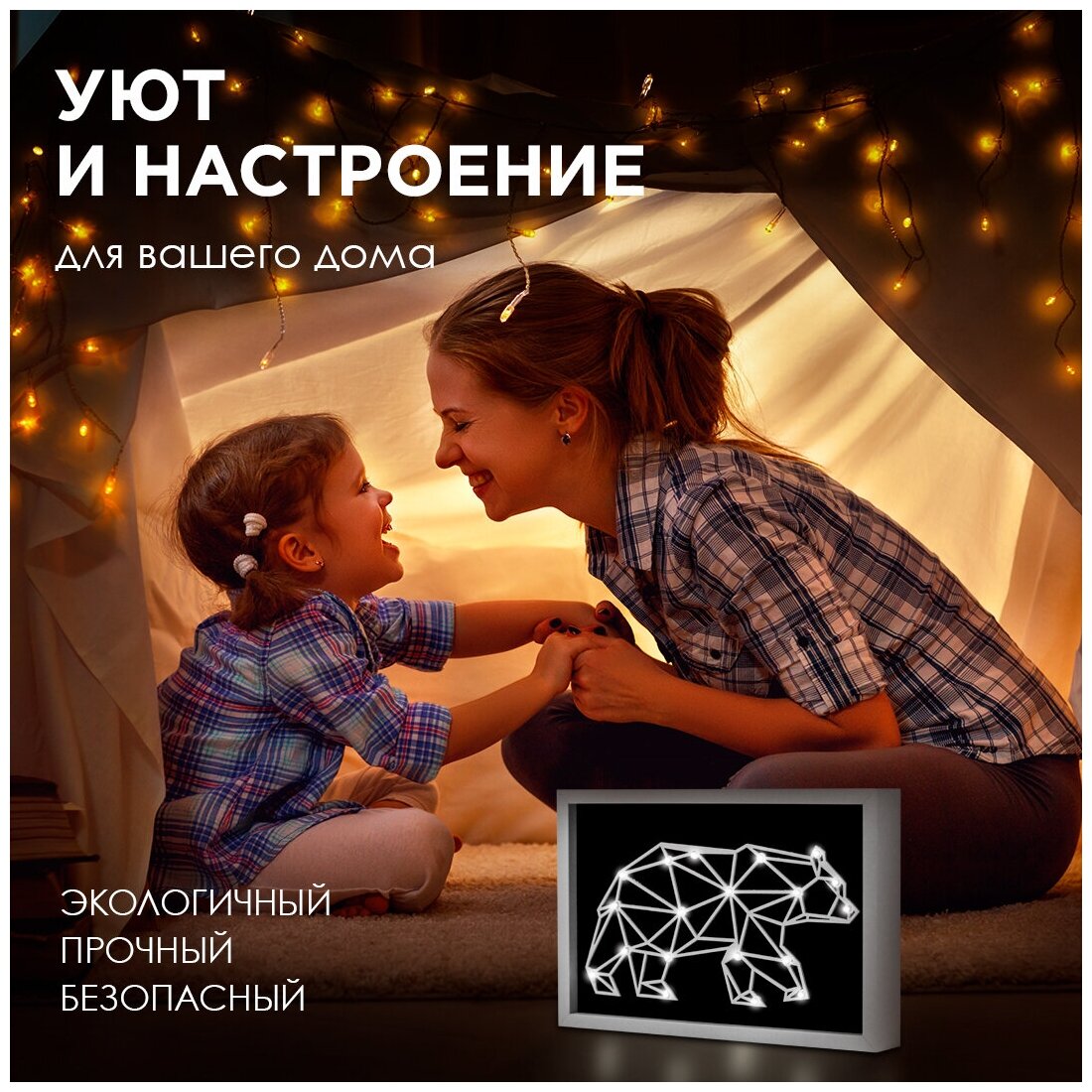 Светодиодный ночник "Медведь" 12-181, теплый белый, 2хАА, МДФ, 300х200х40мм