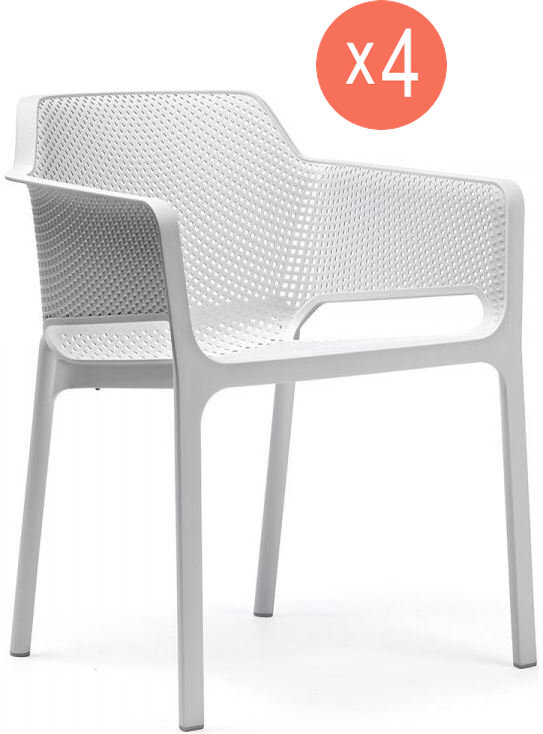 Стул Комплект из 4-х кресел садовых Nardi Net, цвет белый, стеклопластик, Италия