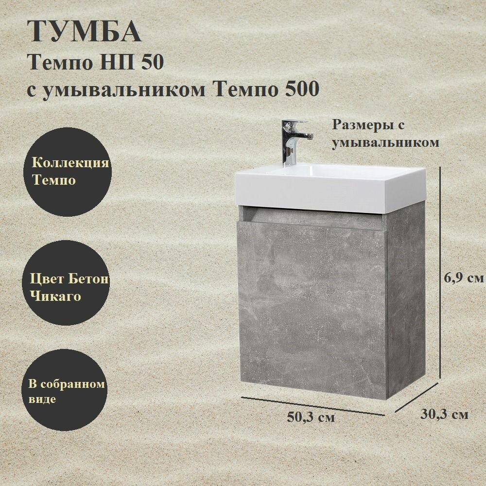 Тумба с раковиной Темпо Н 50-01 Бетон Чикаго светло-серый (31) левый 24 028 ₽ Подробнее
