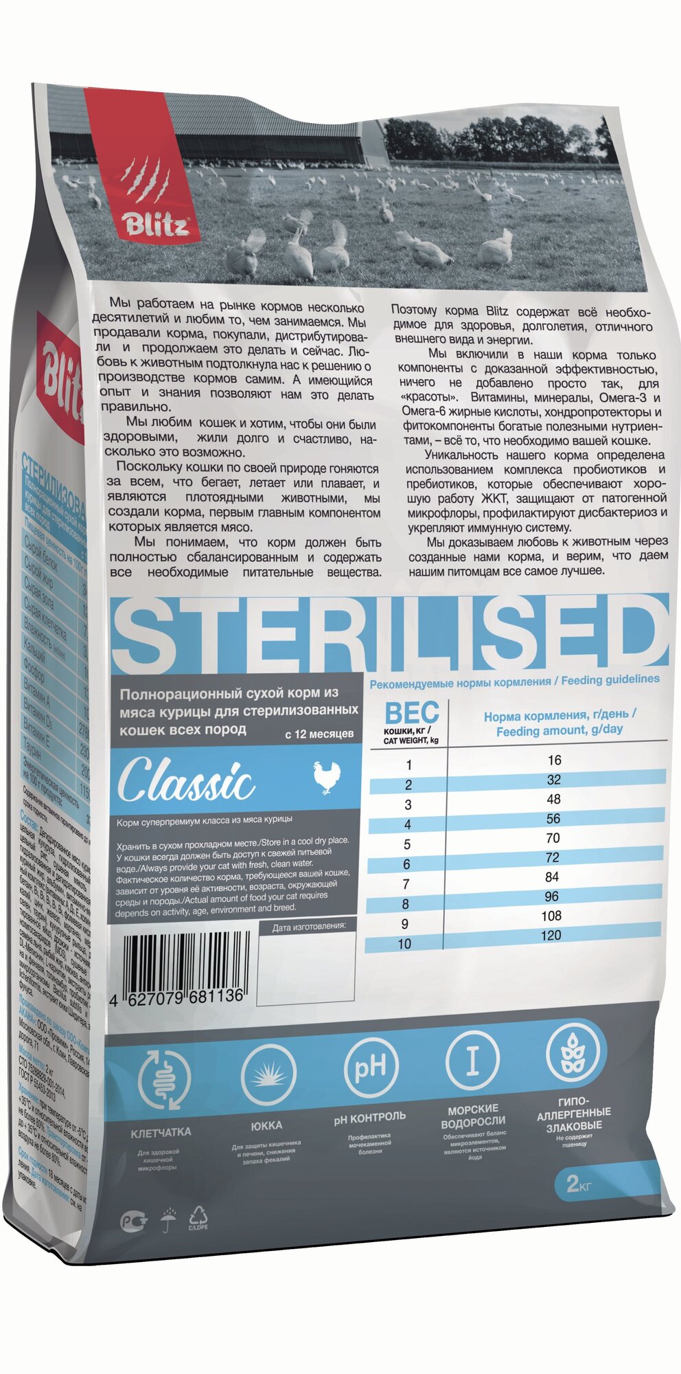 Корм сухой Blitz Classic Sterilised курица для взрослых стерилизованных кошек (2 кг)