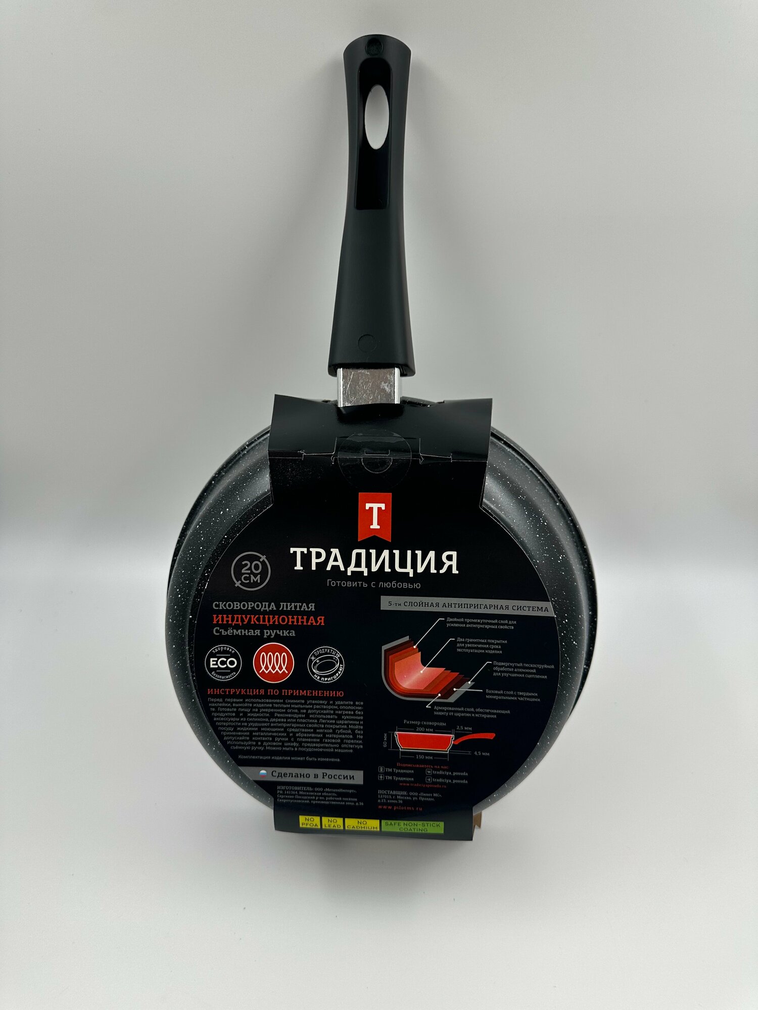 Сковородки Сковорода традиция ТП2205И антипригарное покрытие, литая, со съемной ручкой, 20 см, черный