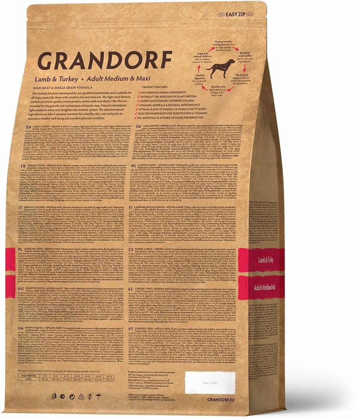 Сухой корм Grandorf для собак средних и крупных пород, с ягненком и индейкой - 1 кг