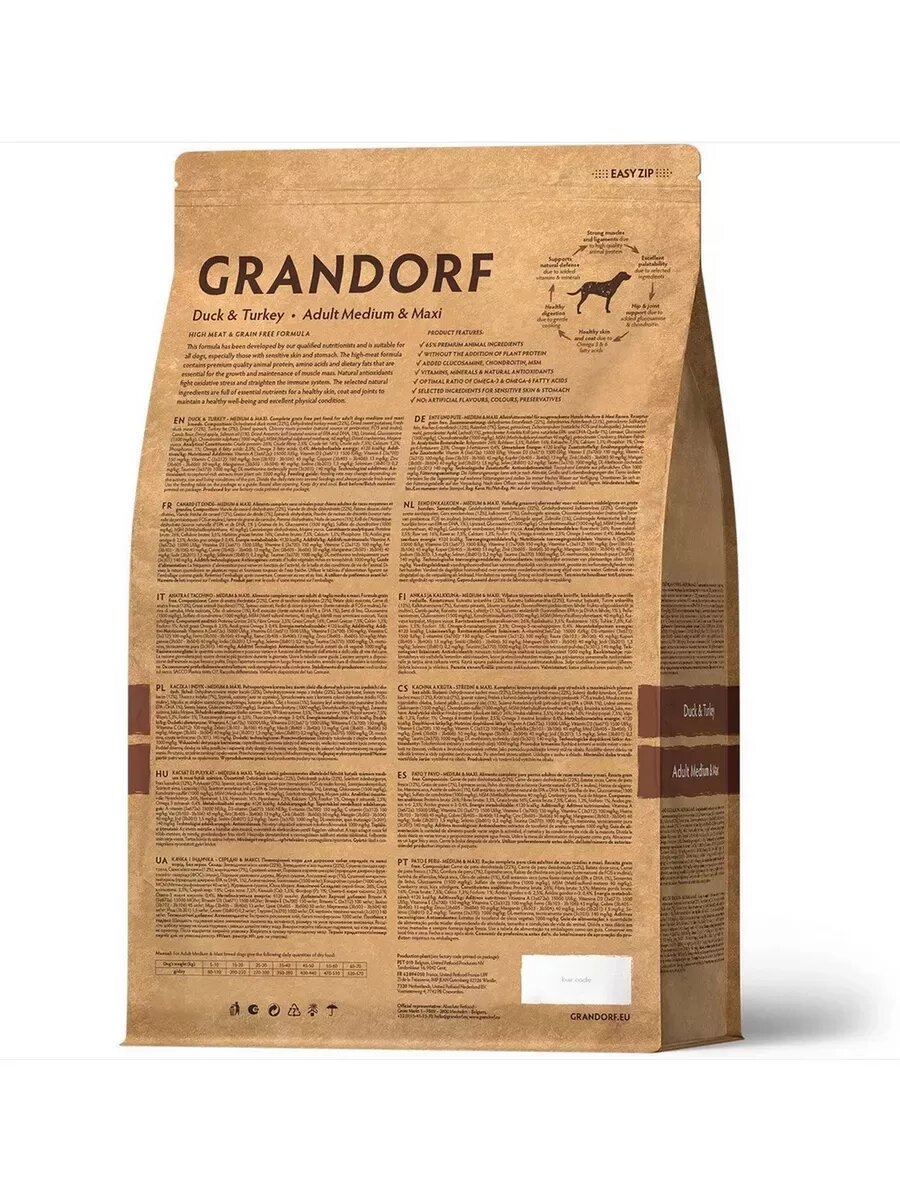 GRANDORF GRAIN FREE DOG ADULT MEDIUM&MAXI DUCK&TURKEY беззерн д взр соб сред и крупн пор утка индейк 3 кг