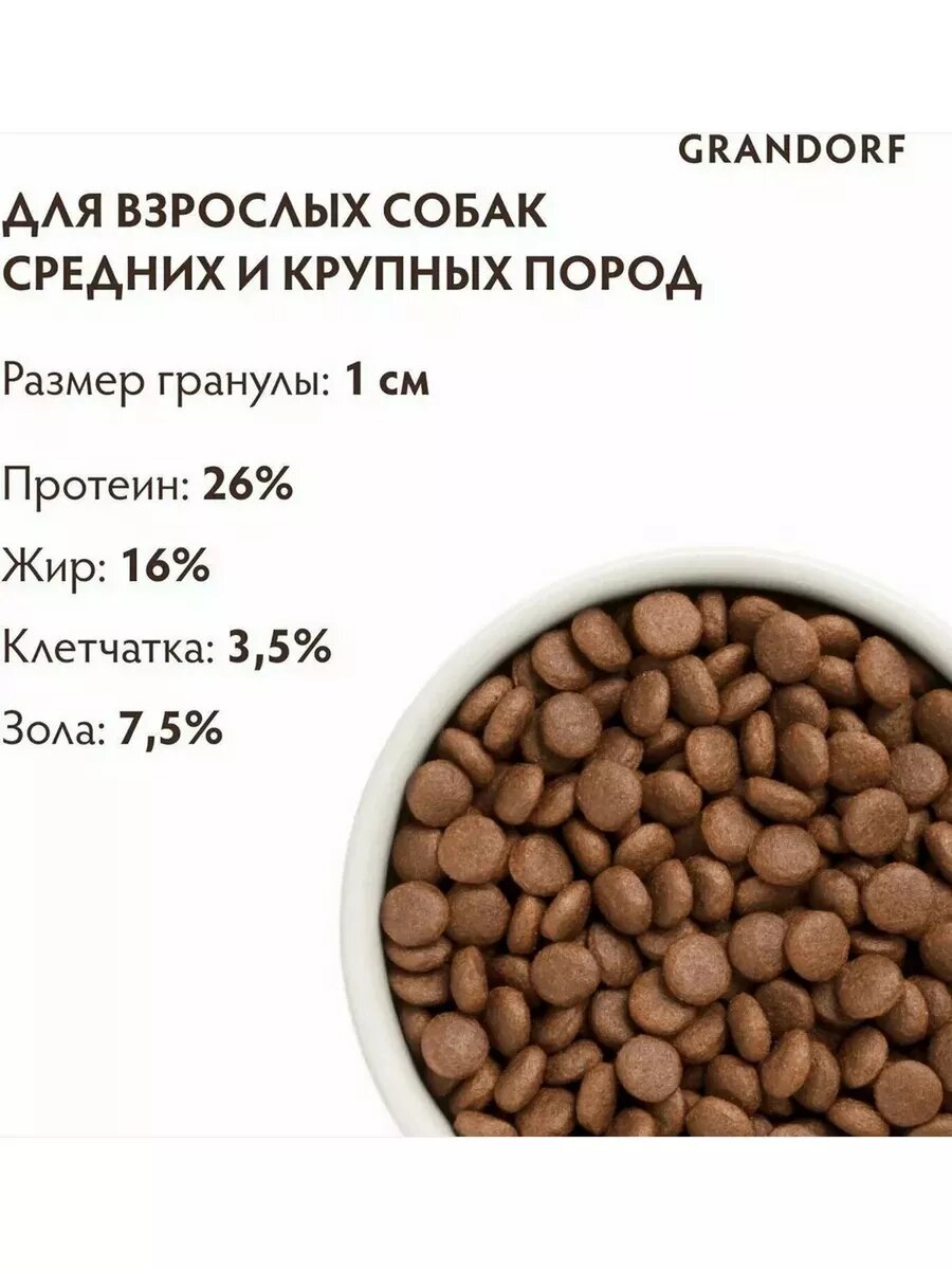 Grandorf сухой корм для взрослых собак средних и крупных пород с ягненком и индейкой - 1 кг