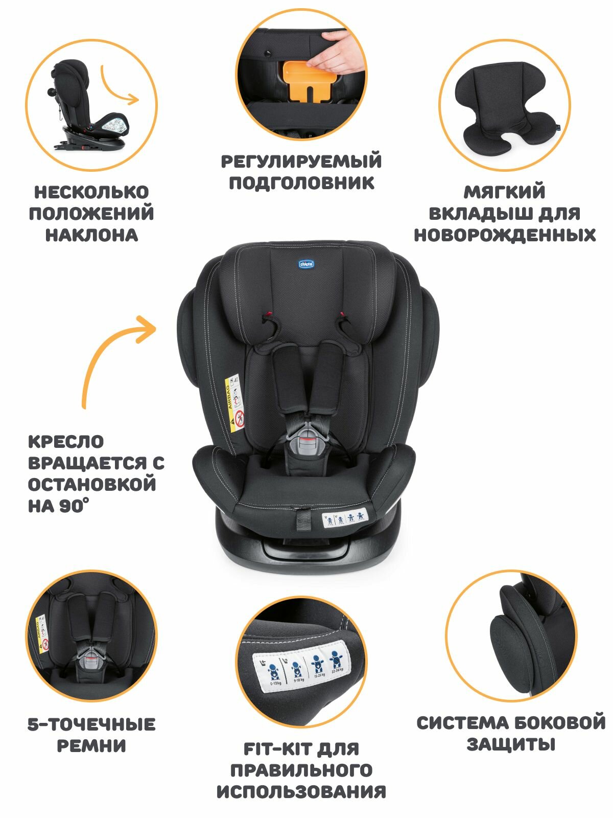Автокресло детское Чико UNICO PLUS 0+/1/2/3, 0-12 лет, 0-36 кг / Isofix / Вкладыш для новорожденных