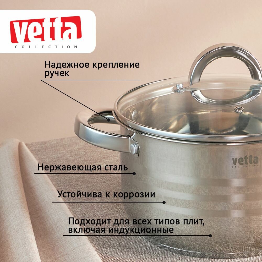 Кастрюли Кастрюля со стеклянной крышкой Vetta Фултон, 4 л, для индукционной плиты, нержавеющая сталь
