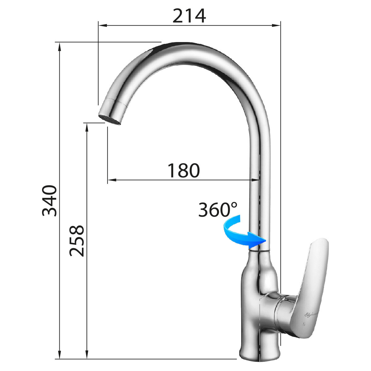 Смеситель Смеситель для кухни, мойки латунный однорычажный с высоким изливом ELGHANSA 5670909, хром