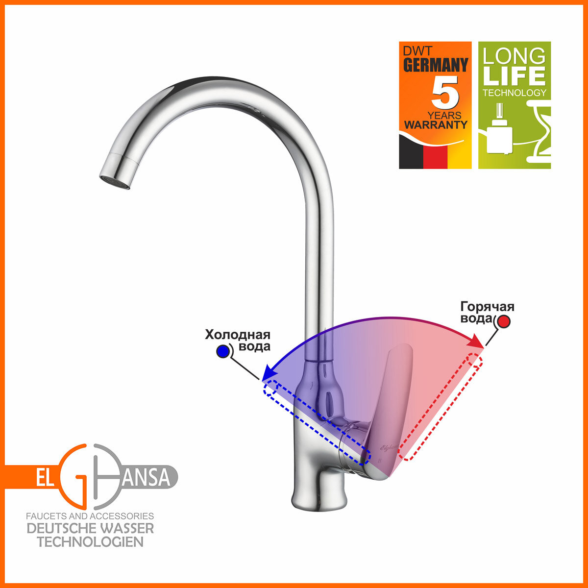 Смеситель для кухни (мойки) латунный однорычажный с высоким изливом ELGHANSA 5670909, хром 6 818 ₽ Подробнее