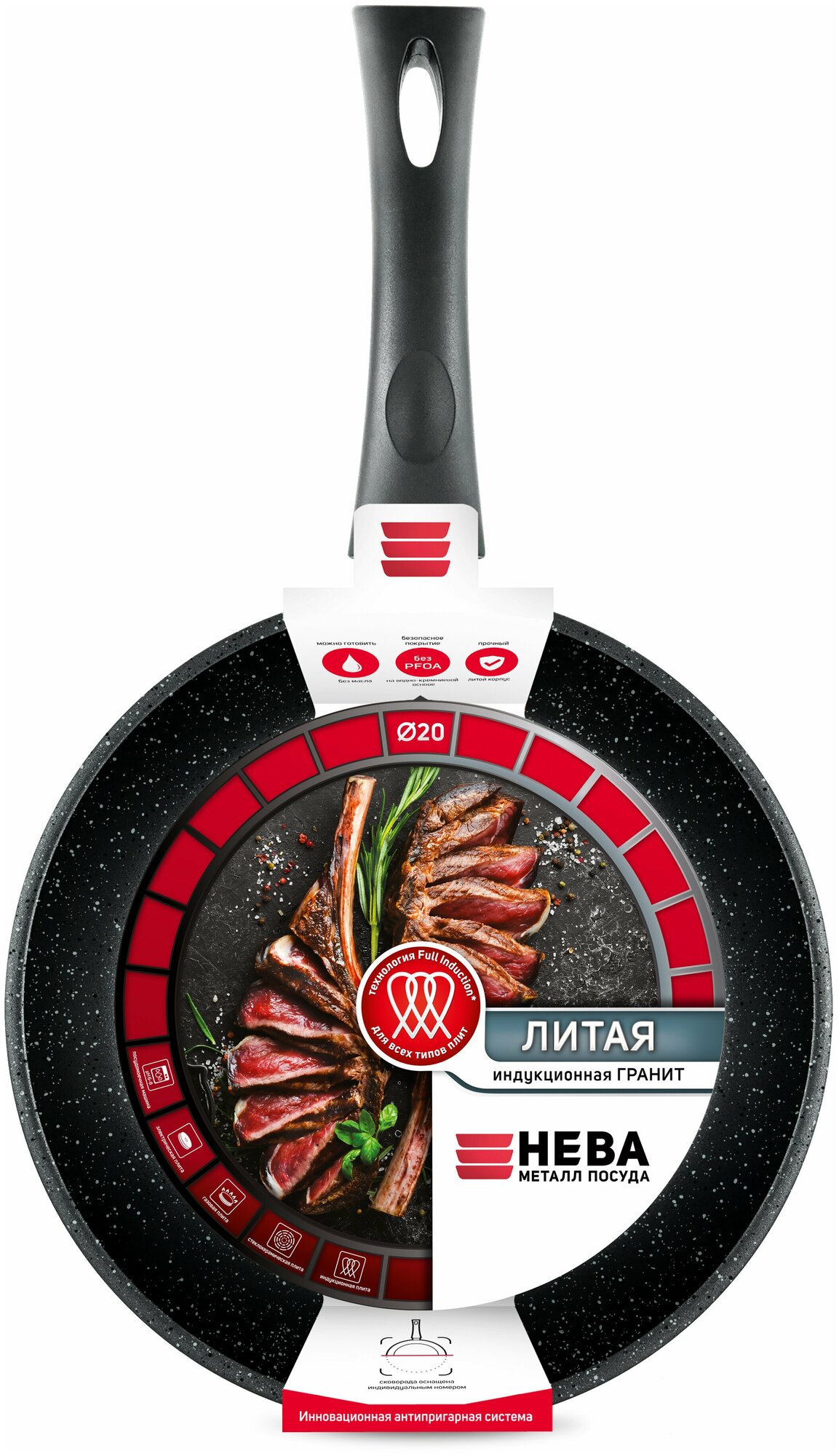 Сковорода 20 литая Индукция Гранит с/р L18020i Нева металл посуда