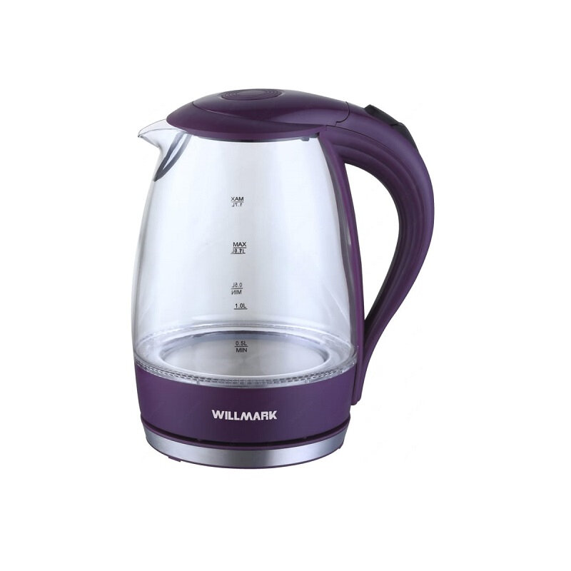 Чайник электрический Willmark WEK-1705GV стеклянный, мощность 2200 Вт, емкость 1.7 л, подсветка, фиолетовый