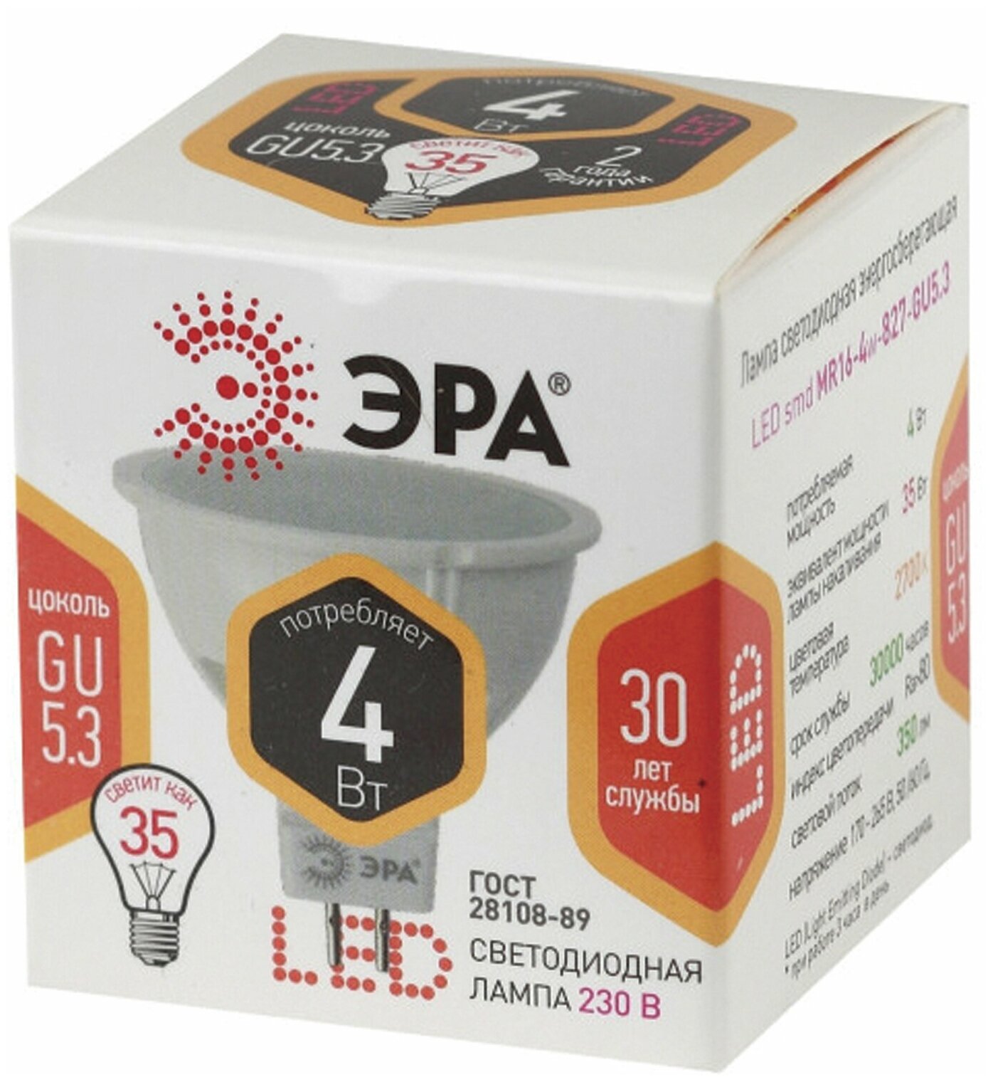 Лампочки Лампа Эра MR16-4w-827-GU5.3