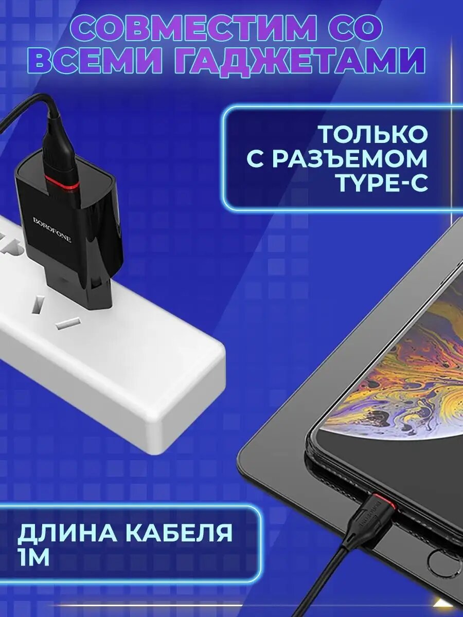 Сетевой адаптер питания Borofone BA20A Sharp Black зарядка 2.1А 1 USB-порт + кабель USB-C , черный 295 ₽ Подробнее