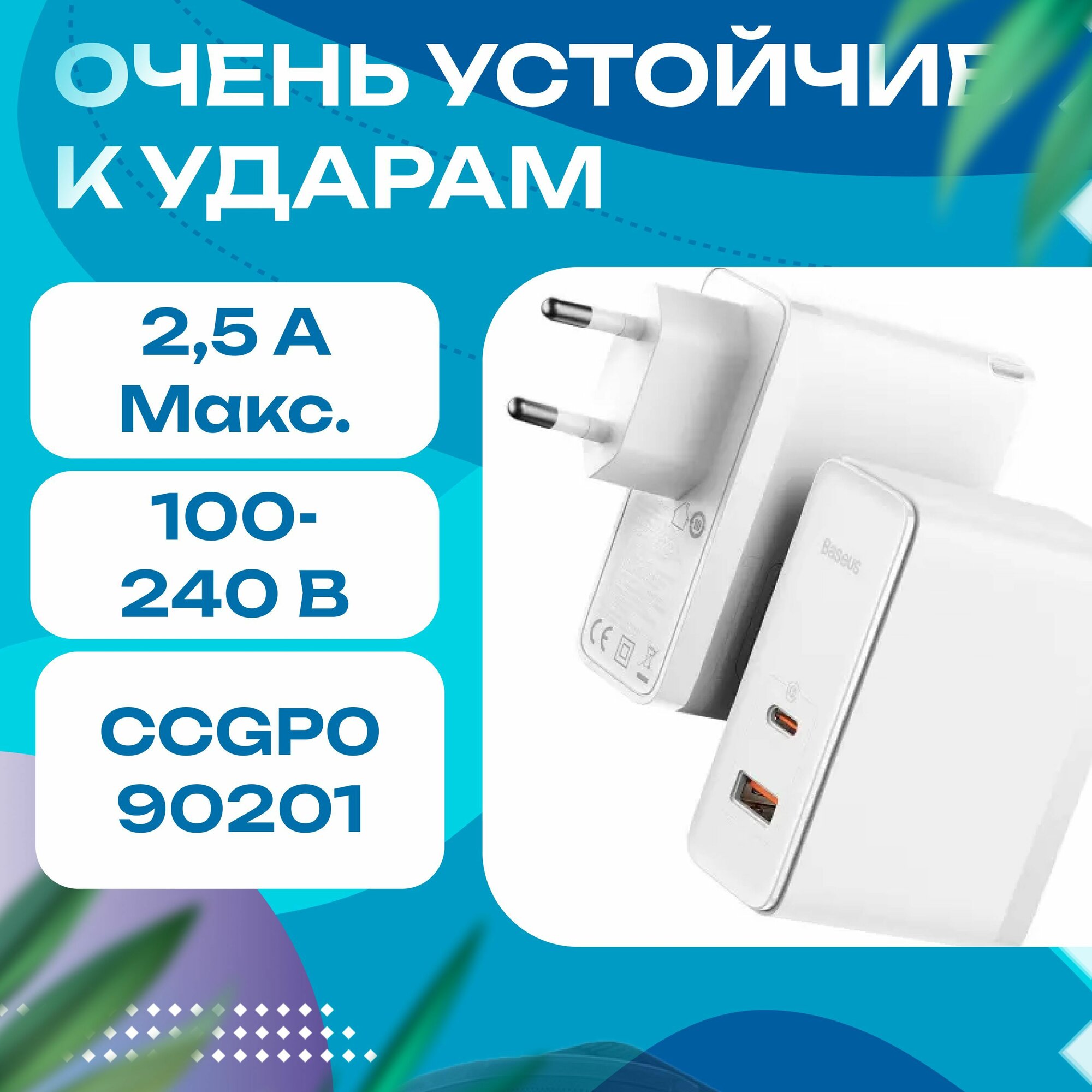Зарядное устройство Baseus GaN5 Pro быстрое универсальное зарядное устройство GaN USB type C/USB 100W белый (CCGP090202)
