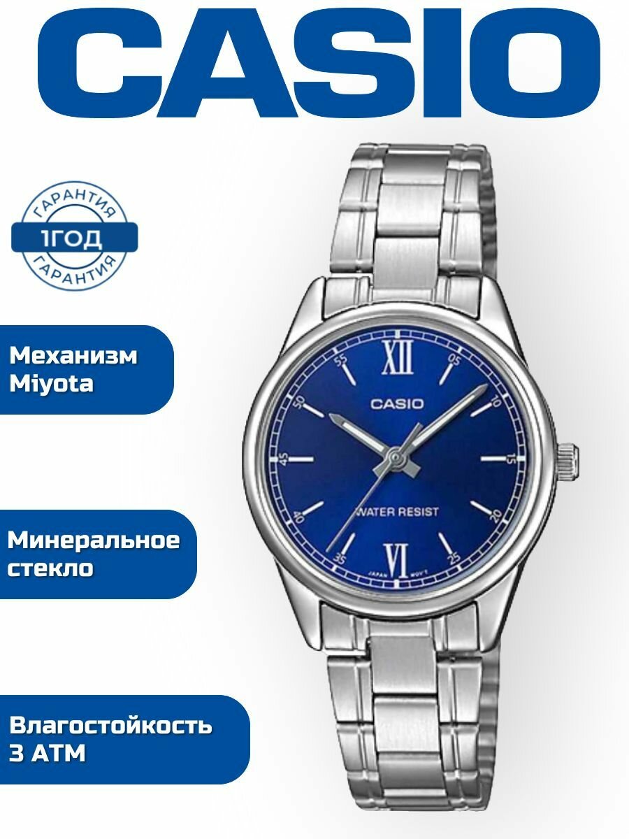 Наручные часы Японские кварцевые наручные женские часы Casio Collection LTP-V005D-2B2 на браслете из нержавеющей стали, с водозащитой 3 Бара и международной гарантией от производителя