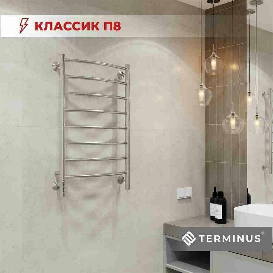 Полотенцесушитель электрический Terminus (Терминус) Классик П8 500х850мм, нержавеющая сталь, встроенный диммер, гарантия 5 лет