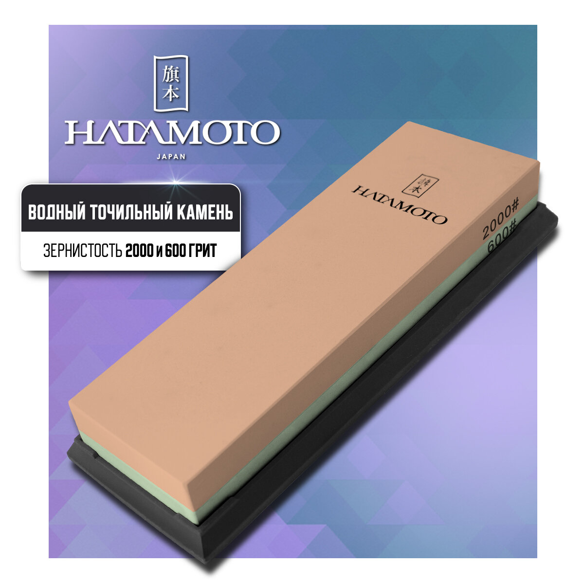 Точилка ножей Точильный камень водный Hatamoto (HT0962), зернистость #600/2000, размер 180*60*28мм, комбинированный средний/финишный с подставкой