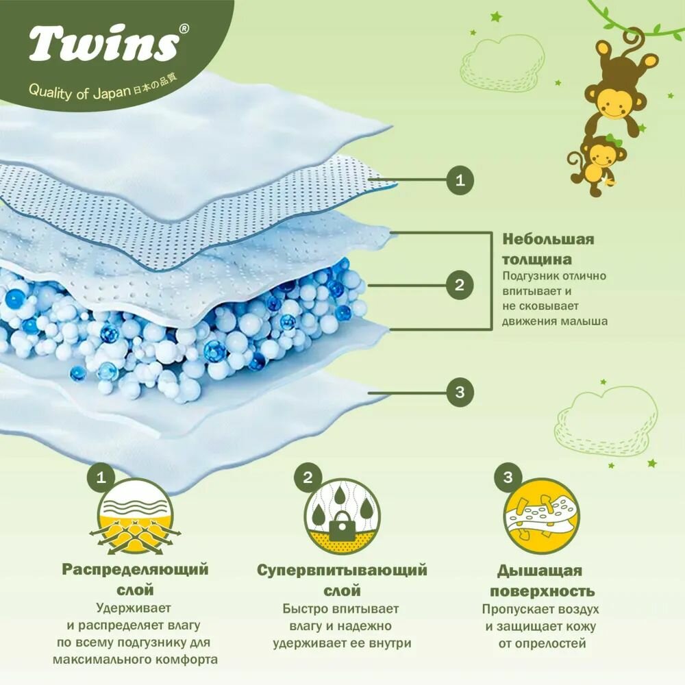 Подгузники Детские Подгузники Twins, S, 4-9 кг, 82 шт, Салфетки Twins 80 шт