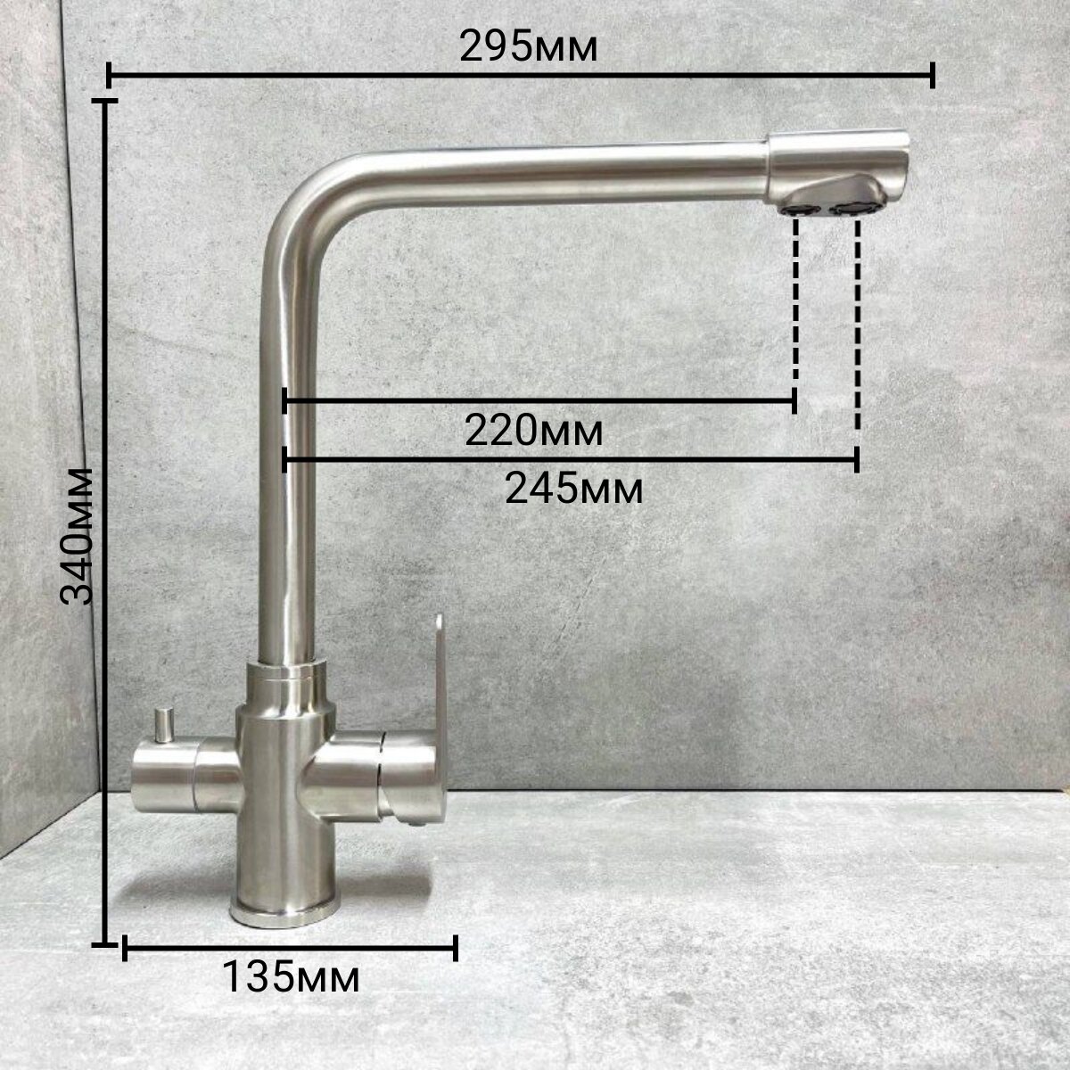 Смеситель Haiba HB76802 для кухни с подключением фильтра питьевой воды, сталь