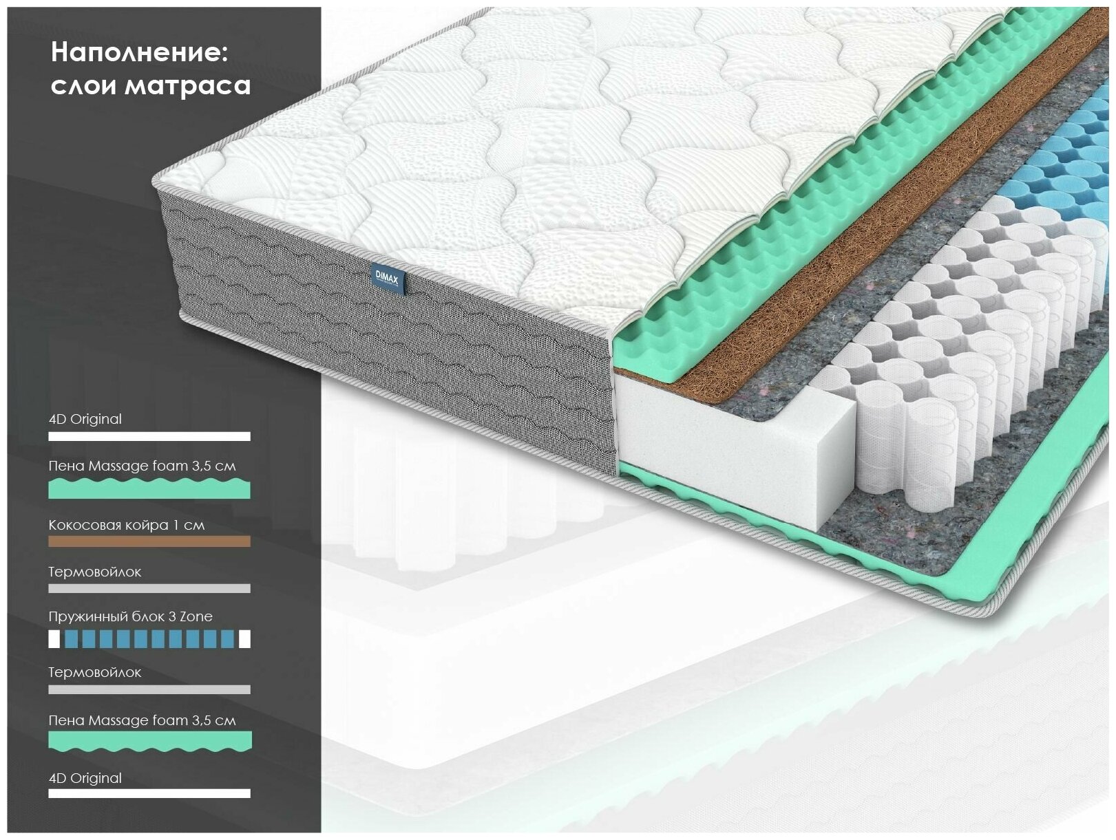 Матрас Димакс ОК Релакс С 500 120х190 18 271 ₽ Подробнее