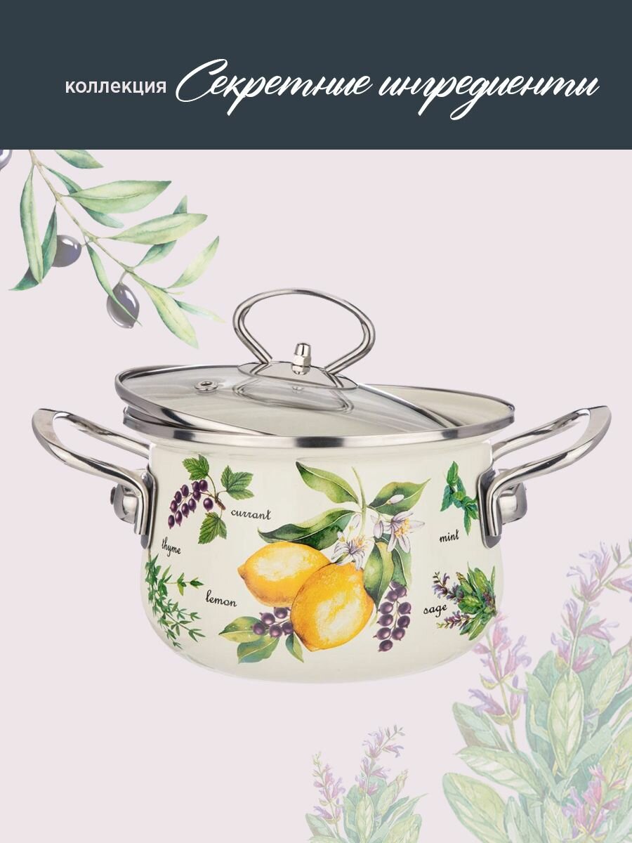 Кастрюли Кастрюля эмалированная 1,5 литра Agness "Секретные Ингредиенты" для всех видов плит 16 х 10 см