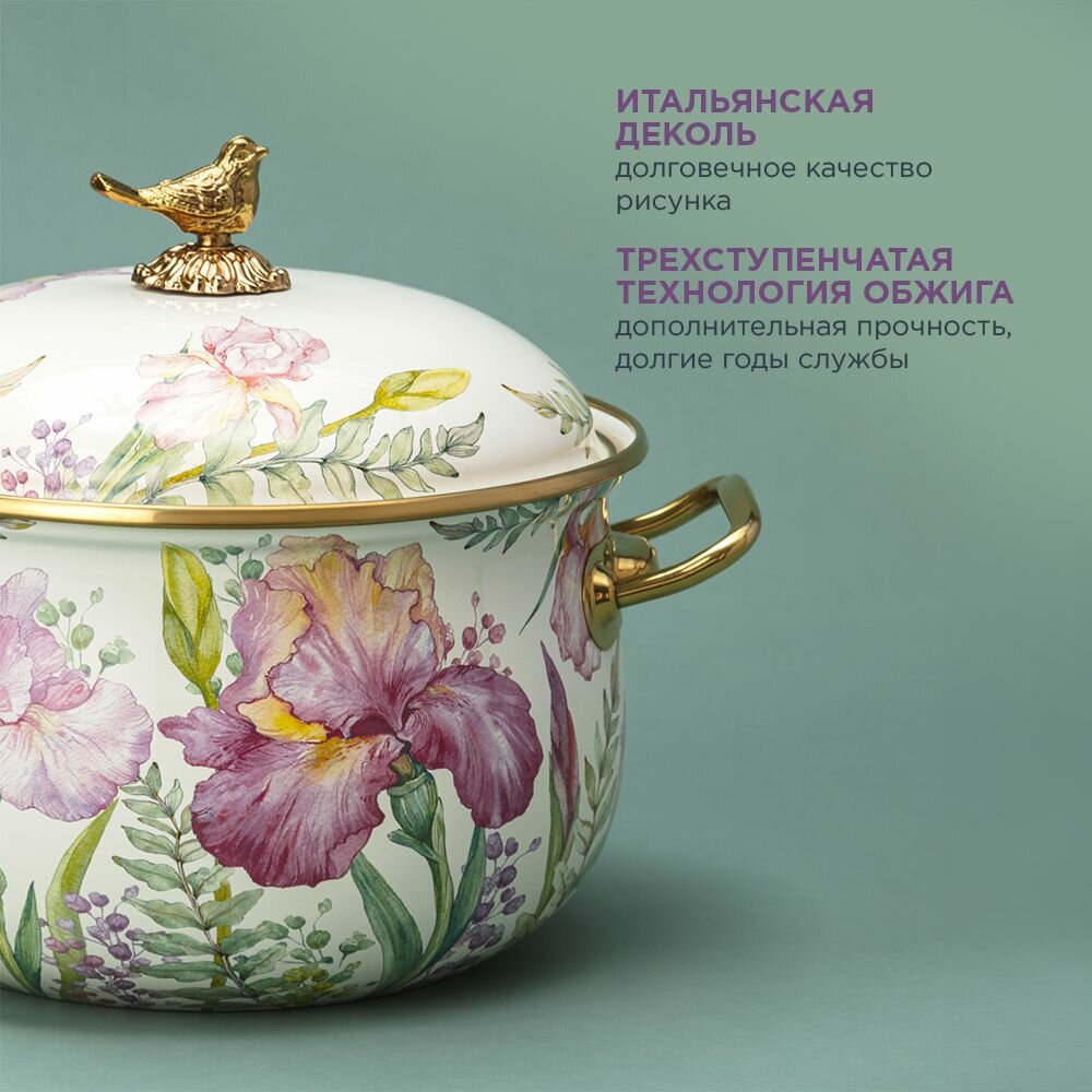 Кастрюля эмалированная с крышкой Vintage Flowers Объем: 6100 мл