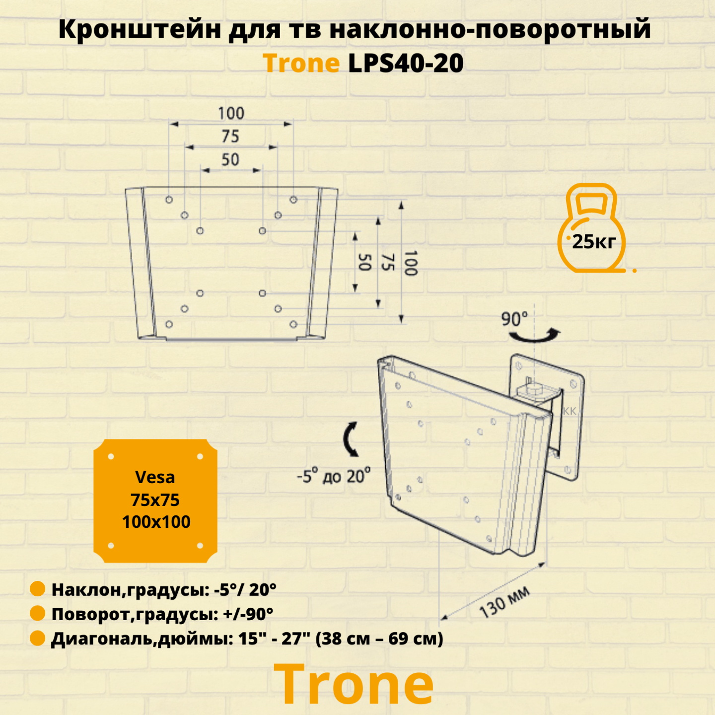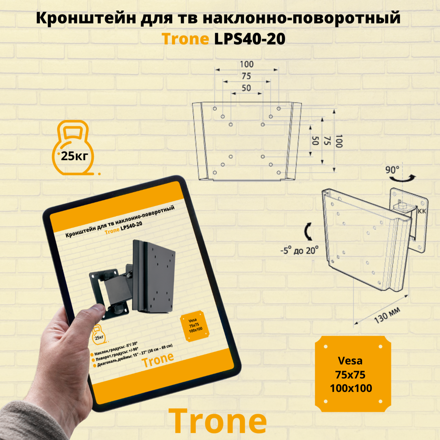 Кронштейн для телевизора на стену наклонно-поворотный с диагональю 15"-27" Trone LPS 40-20,черный