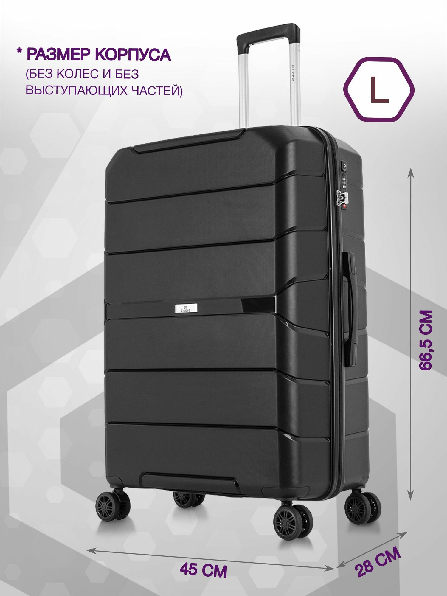 Чемодан L'Case New Delhi размер M (ударопрочный ABS-пластик, съемные колеса, телескопическая ручка, кодовый замок-молния) черный