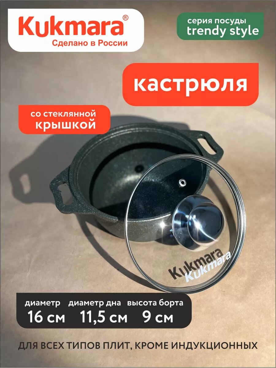 Кастрюля KUKMARA Trendy style mystery литая 1,0 л со стеклянной крышкой