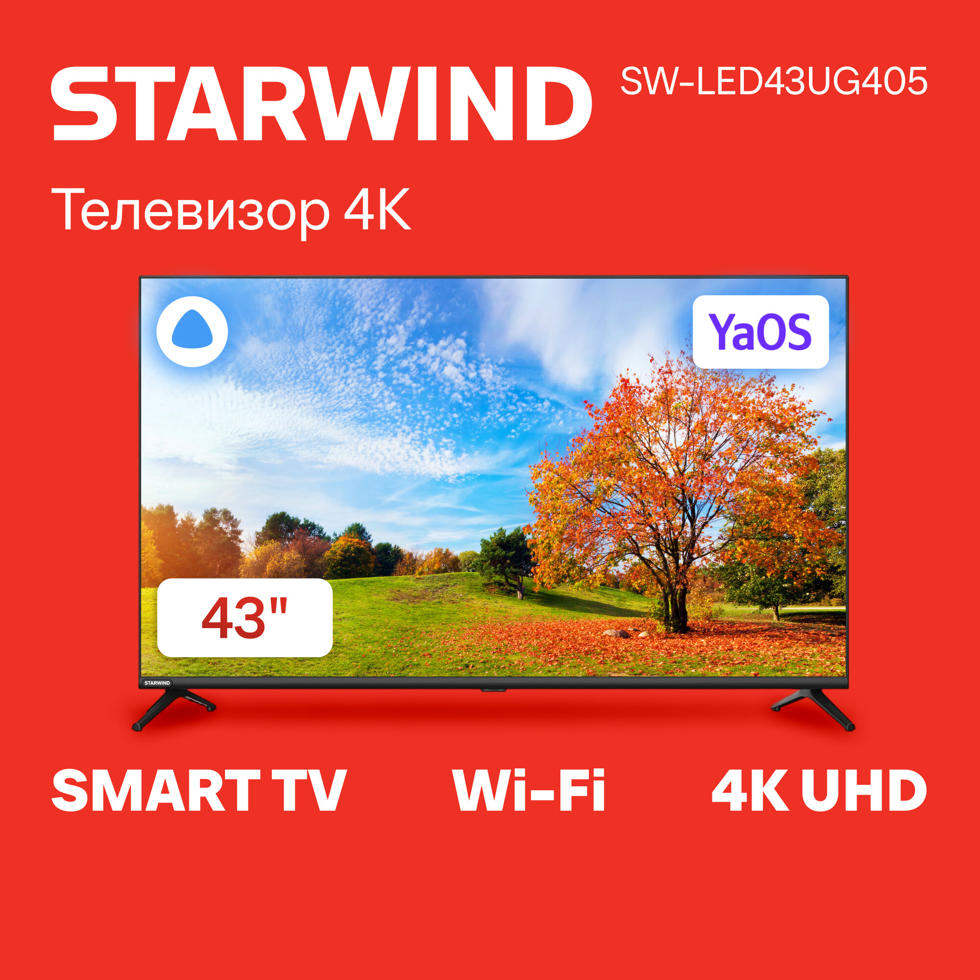 Телевизоры Телевизор LED Starwind 43" SW-LED43UG405 Яндекс.ТВ Frameless черный 4K Ultra HD 60Hz DVB-T DVB-T2 DVB-C DVB-S DVB-S2 USB WiFi Smart TV