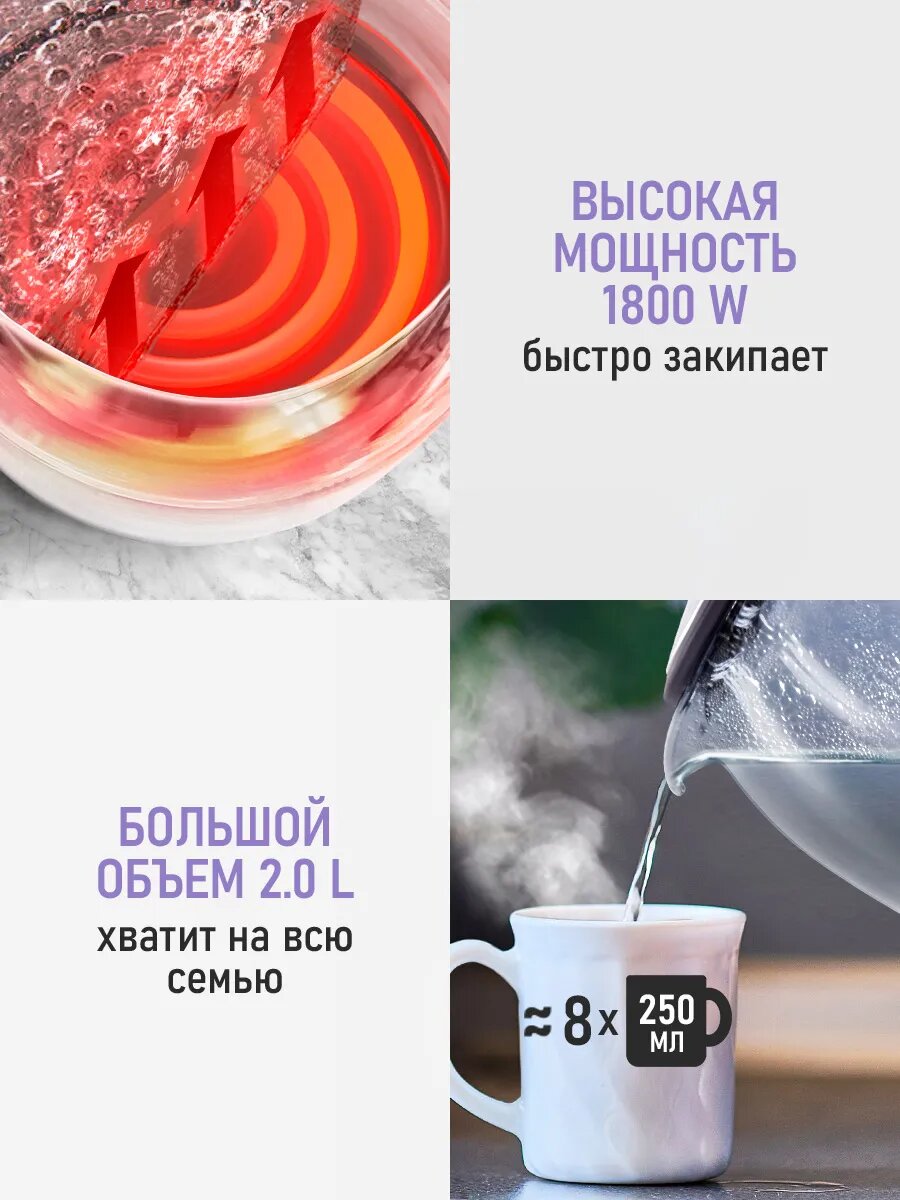 Чайник электрический стеклянный с подсветкой, 2 л 1 570 ₽ Подробнее