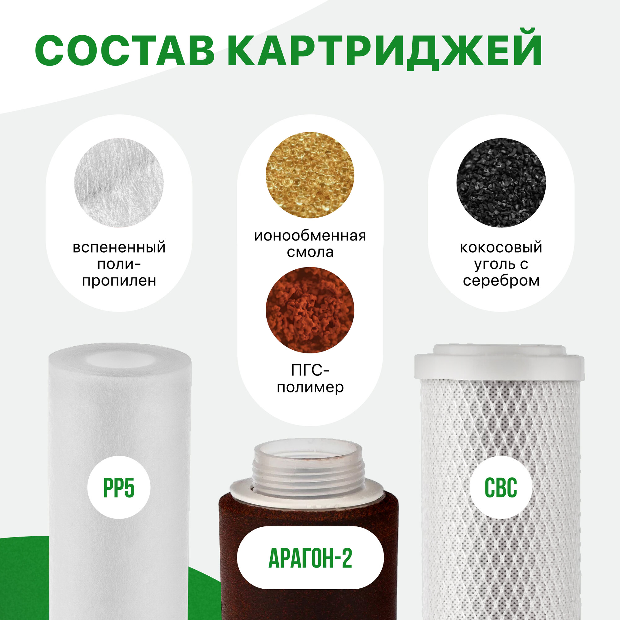 Комплект картриджей №1 к фильтрам для воды Гейзер 3-ИВЖ Люкс, Гейзер 50001, для жесткой воды