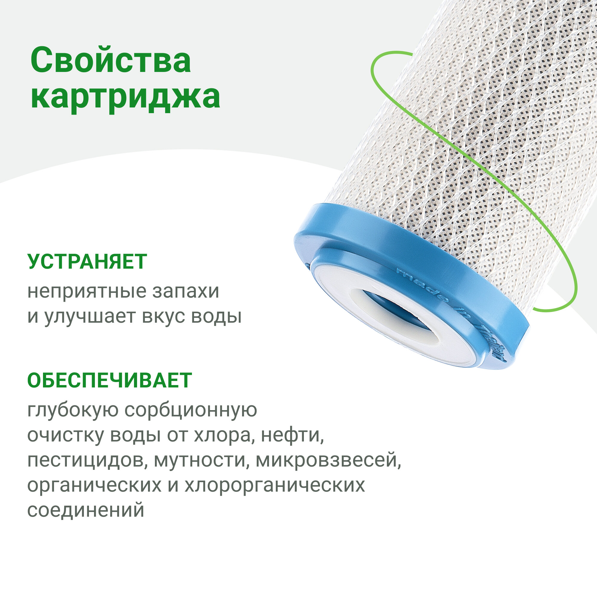 Картридж для воды Картридж Гейзер CBC 10мкм 10SL для магистральных фильтров из кокосового активированного угля для кондиционирования воды и глубокой очистки воды от хлора, органических и хлорорганических соединений