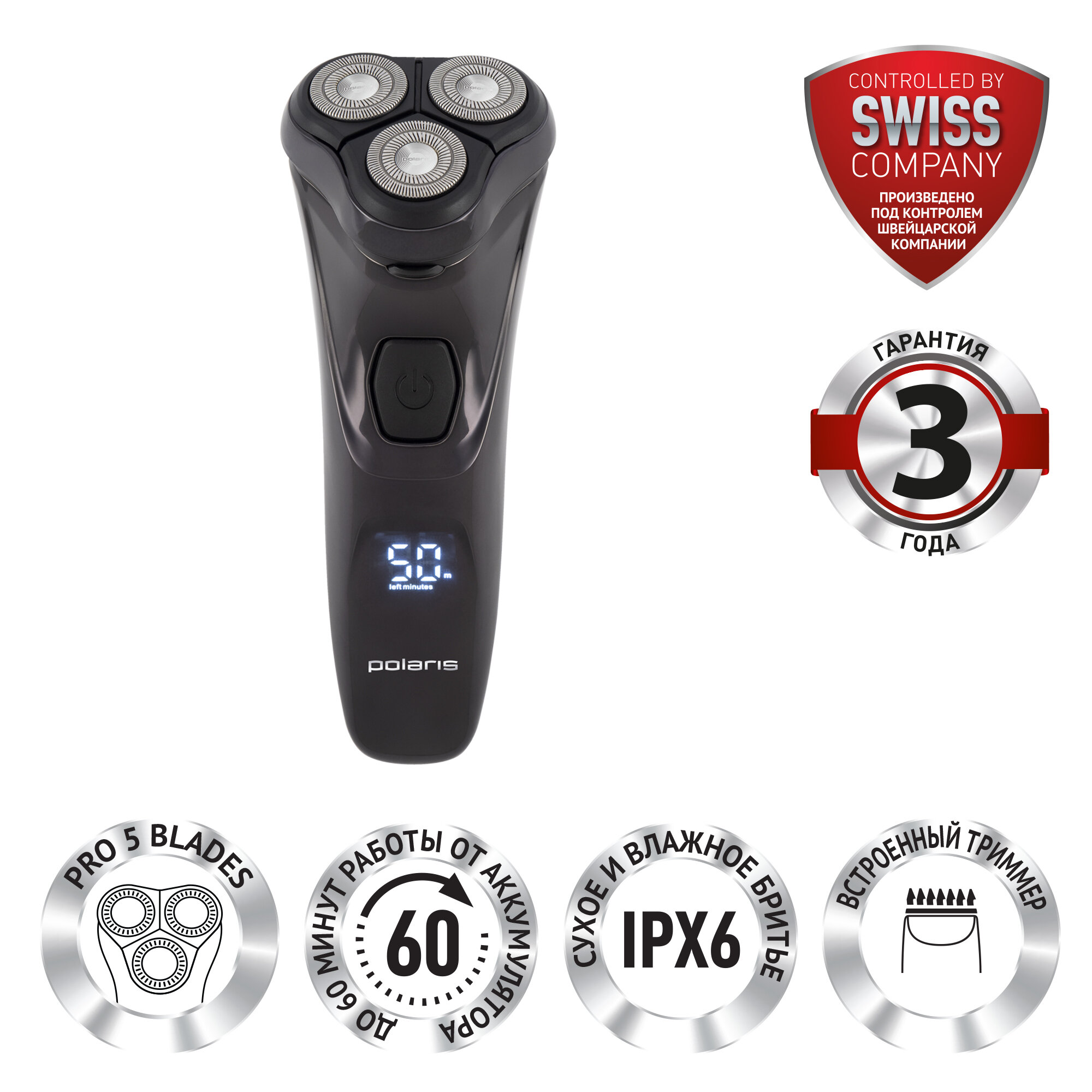 Электробритва Polaris PMR 0309RC wet/dry PRO 5 blades+
