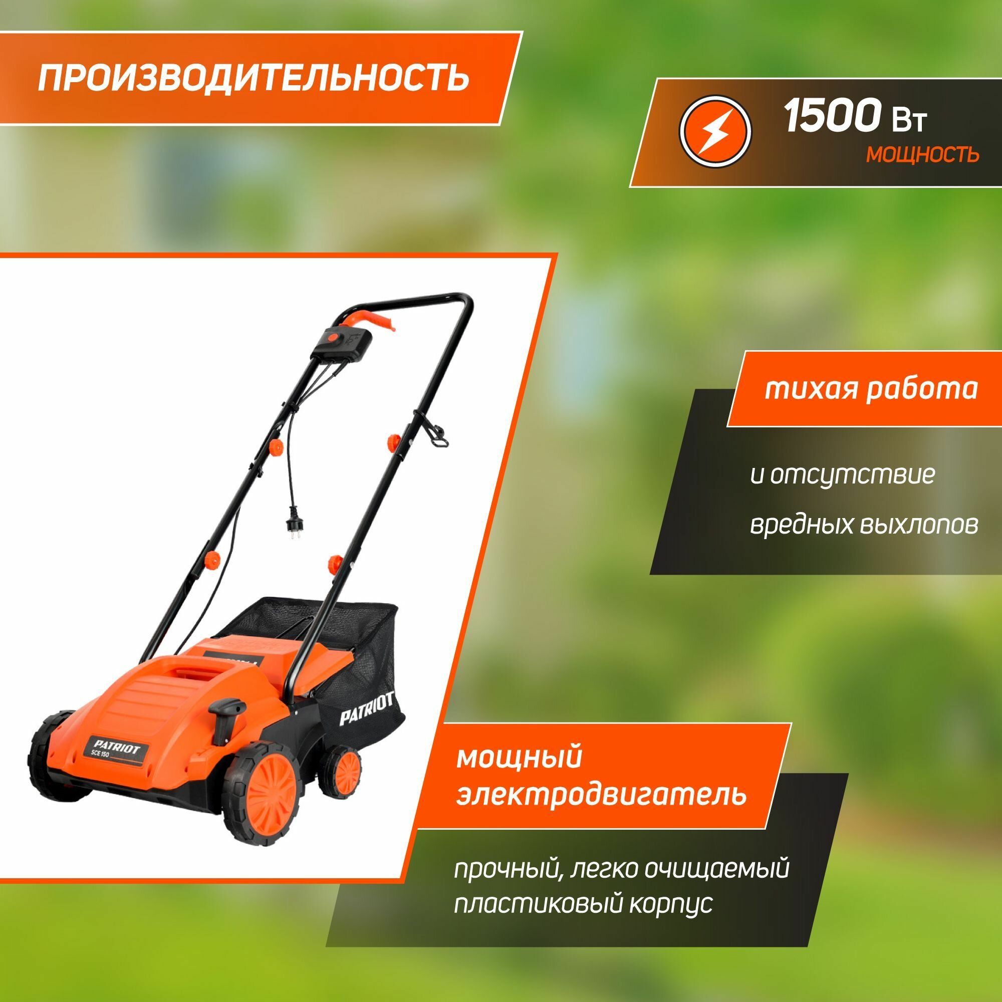 Скарификатор-аэратор электрический PATRIOT SCE 150,1500Вт, ширина скашивания 32см