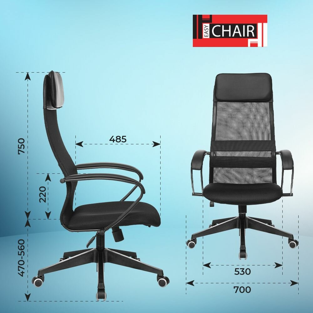 Компьютерные кресла Кресло компьютерное для руководителей Easy Chair 655 TTW, офисный стул на колесиках, с подголовником, искусственная кожа/сетка, черный