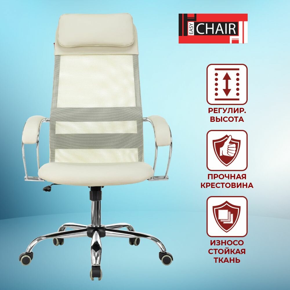 Компьютерные кресла Кресло компьютерное для руководителей Easy Chair 655 SL, офисный стул на колесиках, с подголовником, экокожа/сетка, бежевый