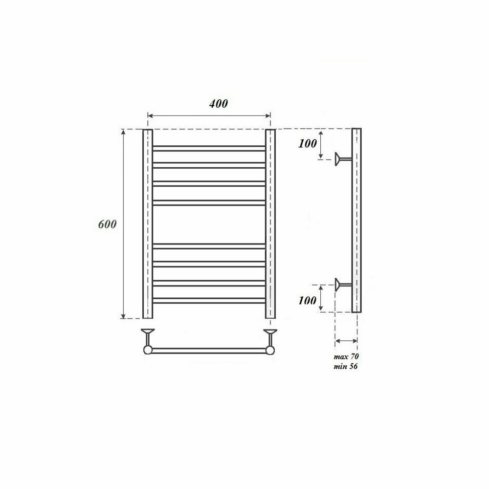 Электрический полотенцесушитель POINT PN10846 П6 400x600 Э (диммер справа) хром