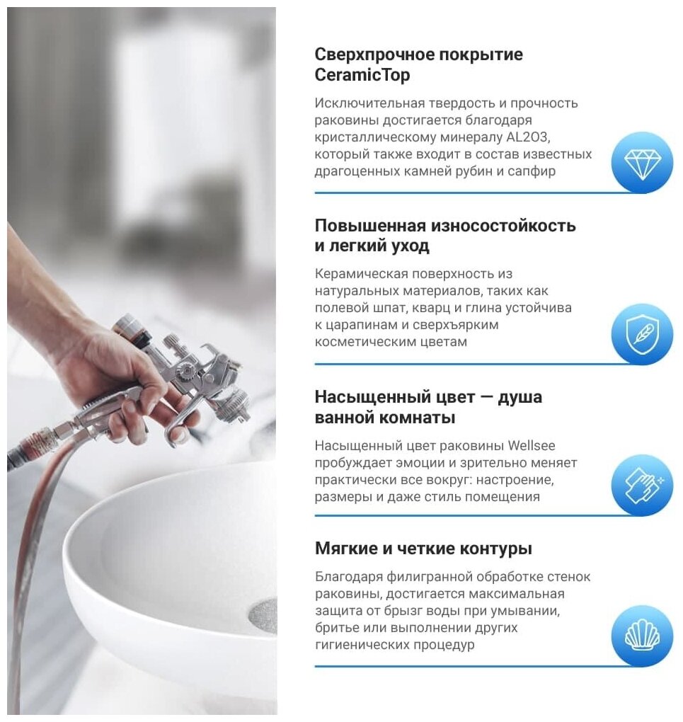 Подвесная/накладная раковина для ванной комнаты Wellsee WC Area 151809000, ширина умывальника 55 см, цвет глянцевый белый