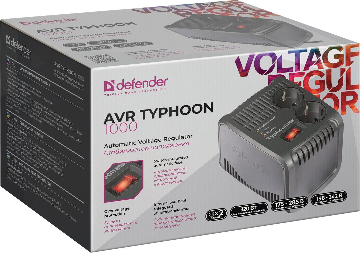 Стабилизатор напряжения Defender AVR Typhoon 1000 320 Вт, 2 розетки