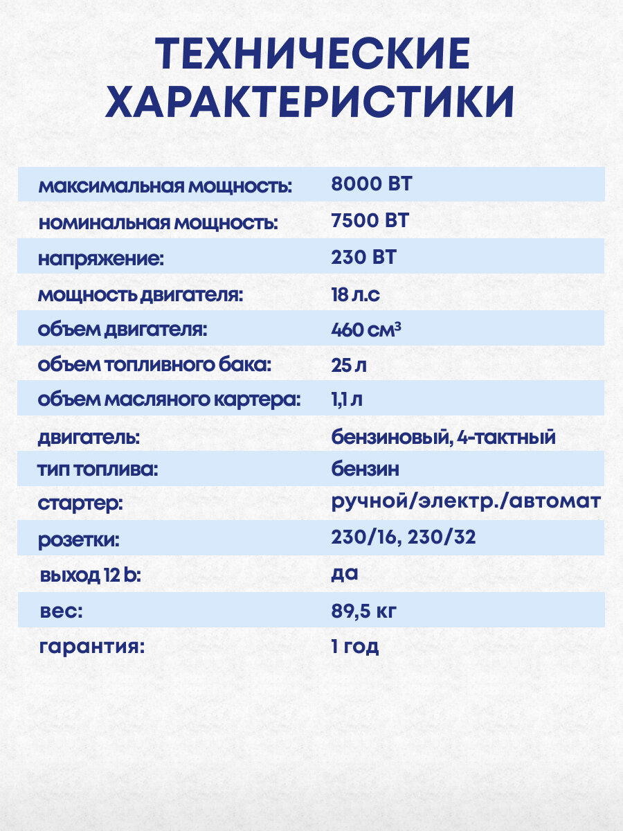 Бензиновый генератор HYUNDAI HHY 10000FE, 230 В, 8кВт 82 570 ₽ Подробнее