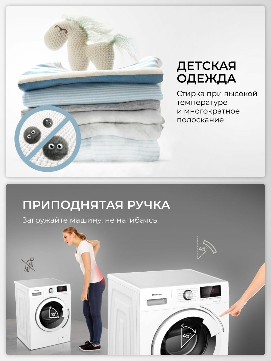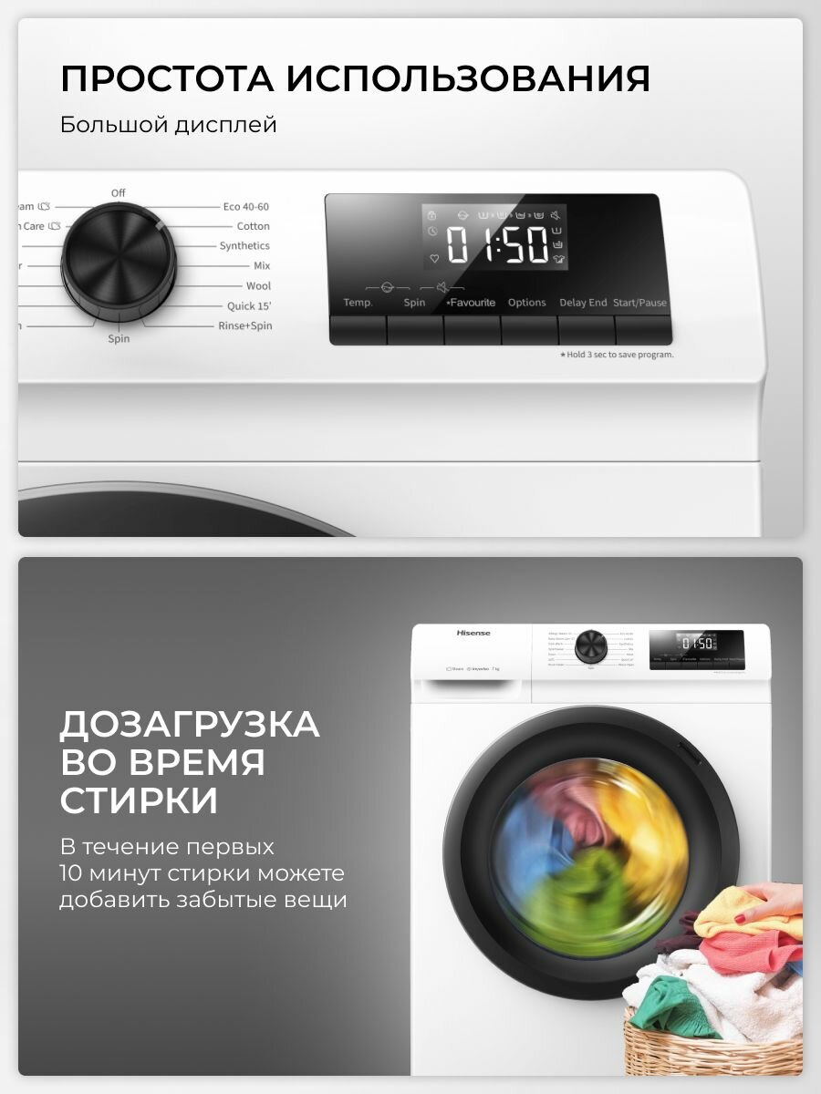 Стиральная машина фронтальная HISENSE WFQP7012VM белый/черный (пар, дозагрузка)