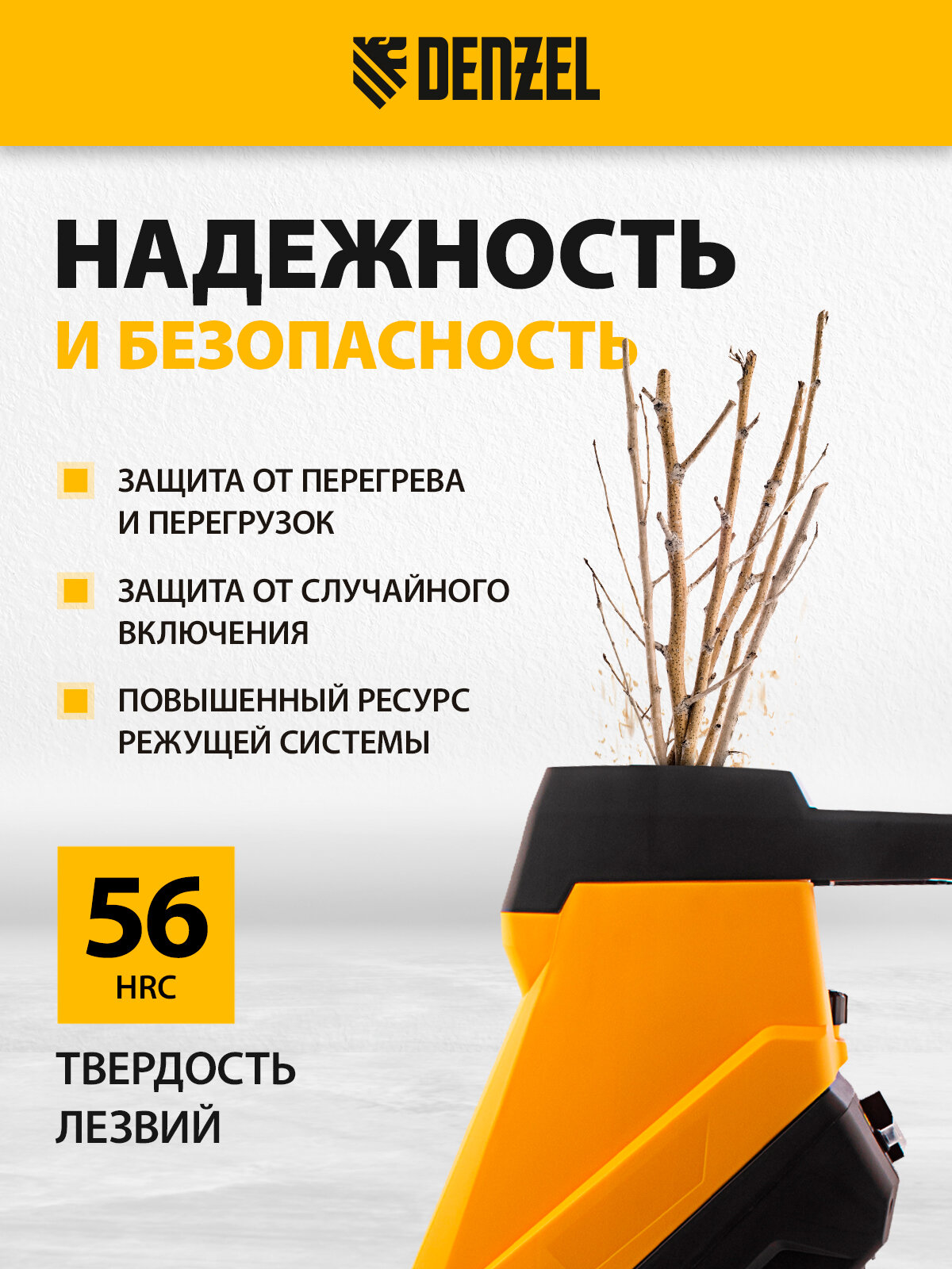 DENZEL 59701 Измельчитель веток и древесных остатков садовый 2500Вт DENZEL