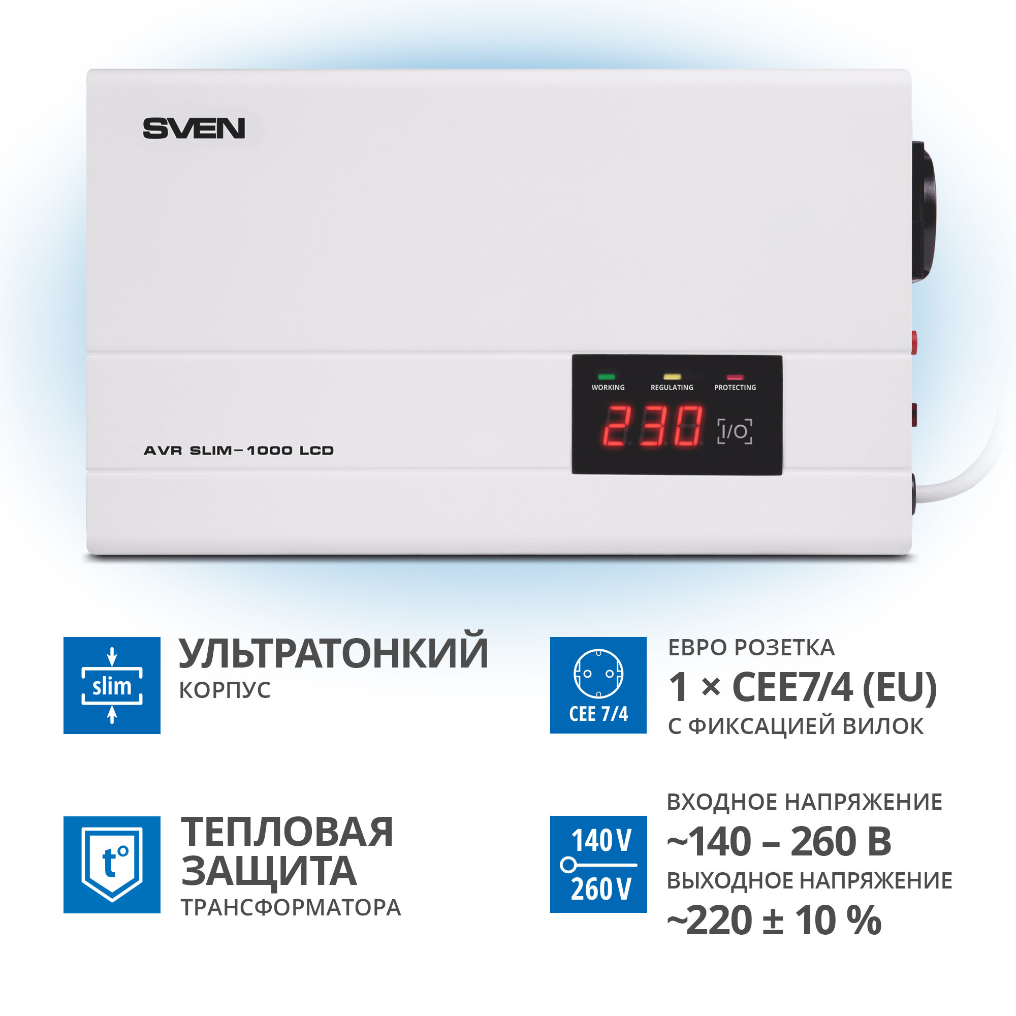 Стабилизатор SVEN AVR SLIM-1000 LCD