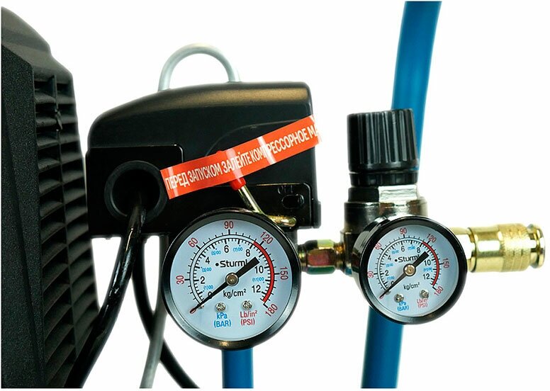 Воздушный компрессор Sturm! (AC93250B), 2400 Вт, 50 л, 370 л/мин, 8 бар, манометр, ремень