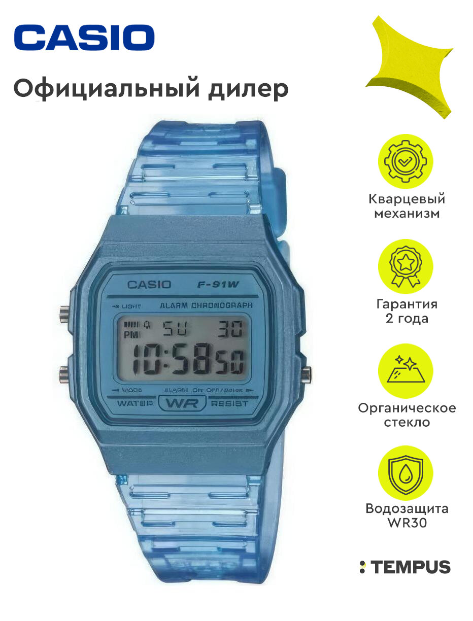 Наручные часы Наручные часы CASIO Collection F-91WS-2EF кварцевые, будильник, хронограф, секундомер, водонепроницаемые, подсветка дисплея, голубой
