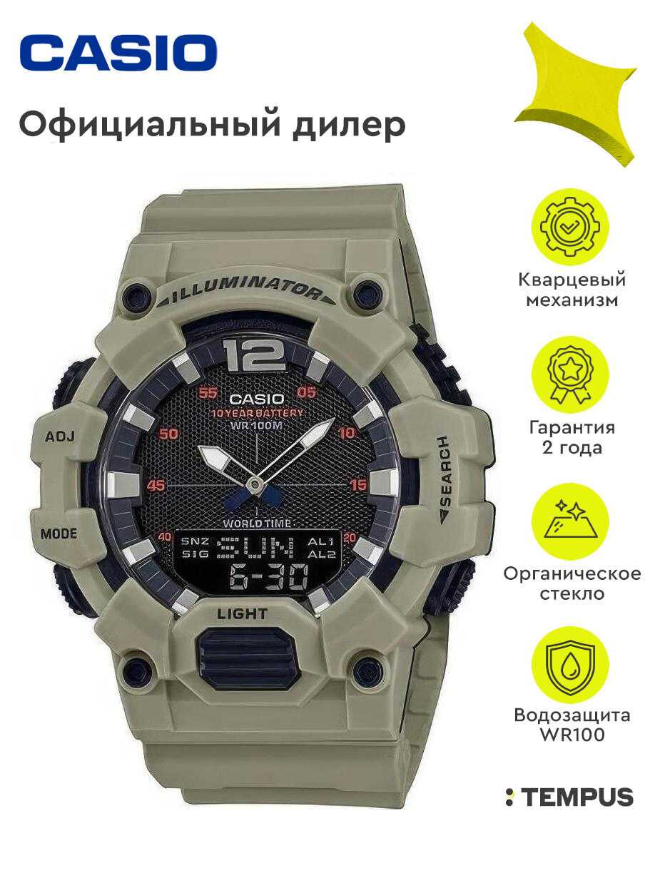 Наручные часы CASIO Collection HDC-700-3A3 кварцевые, будильник, хронограф, шагомер, секундомер, таймер обратного отсчета, водонепроницаемые, противоударные, подсветка стрелок, подсветка дисплея, хаки