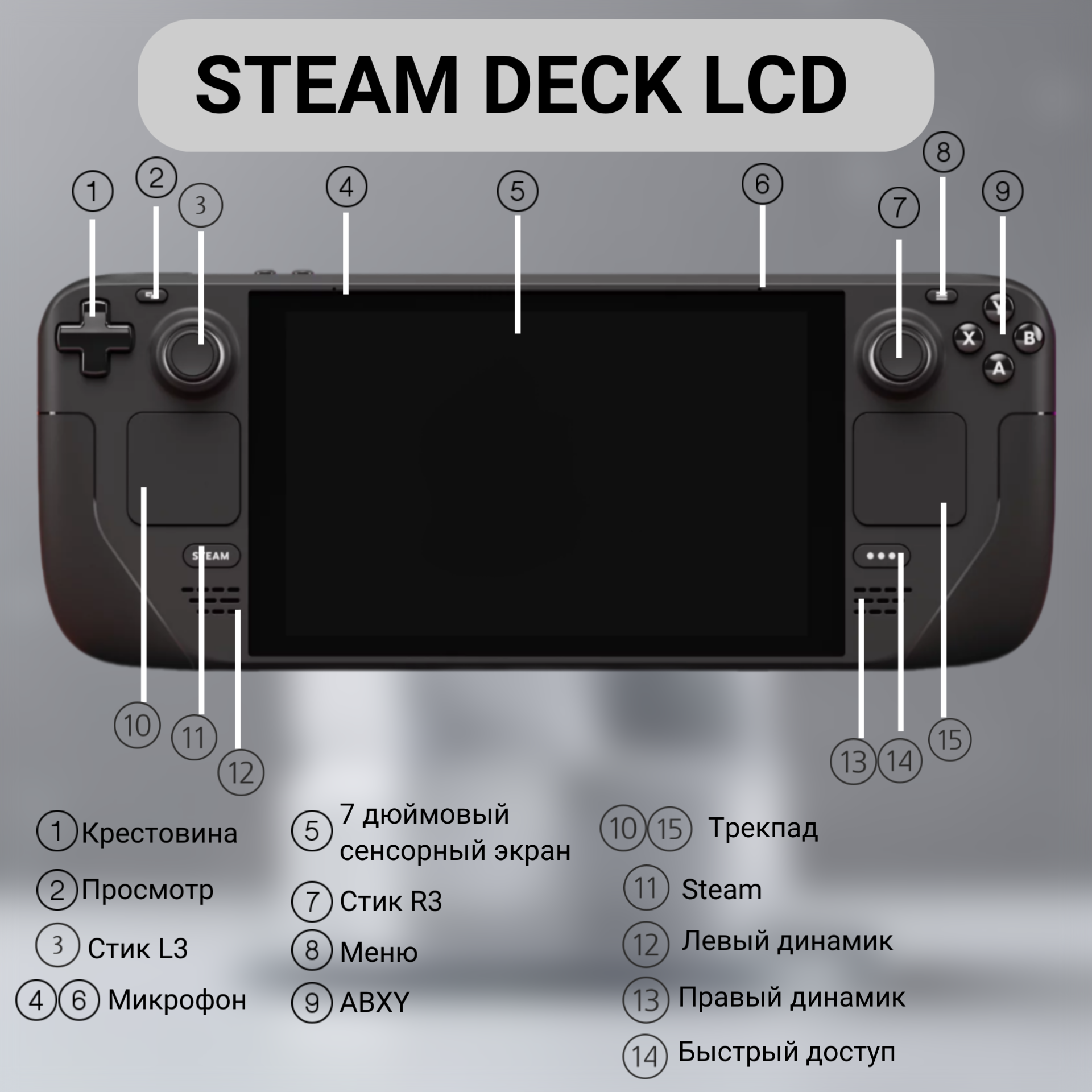 Игровая приставка Valve Steam Deck LCD 256 ГБ SSD, без игр, черный