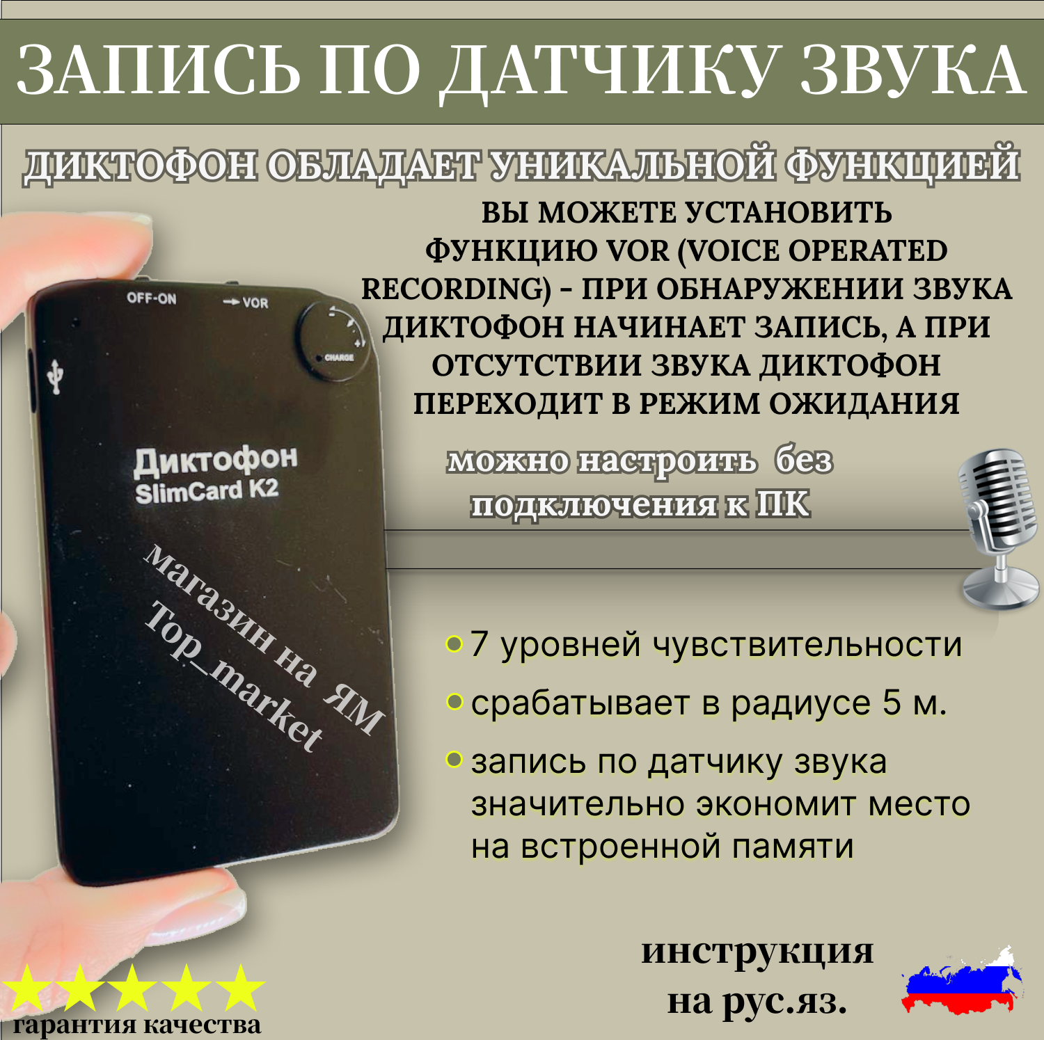 Диктофоны и рекордеры Профессиональный ультратонкий диктофон SLIM CART-k2 память 16GB/ запишет непрерывно до 5 дней (135 Ч), датчик звука, шумоподавление, запись во время зарядки