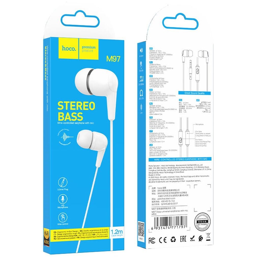 Наушники внутриканальные HOCO M97, кабель Jack 3.5mm, 1.2м, цвет: чёрный
