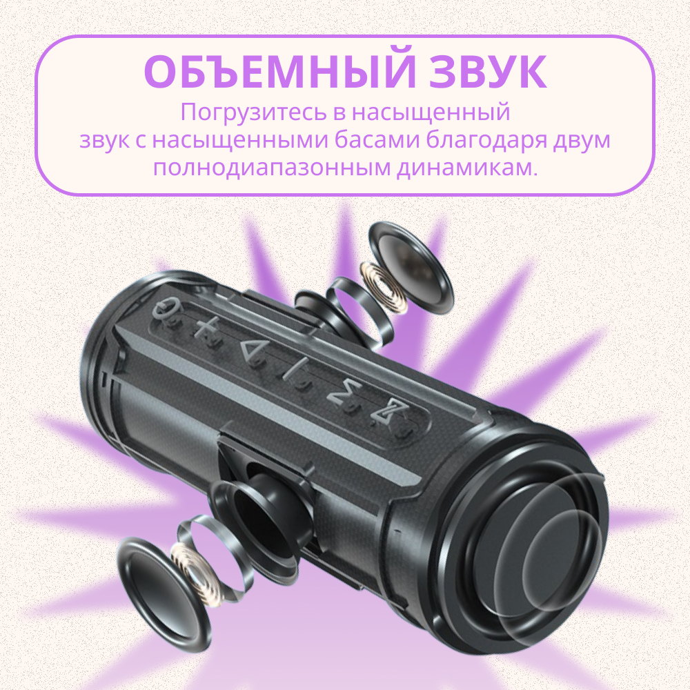 Powerbank Портативная колонка Mirtune C2 24Вт, беспроводная блютуз, черный